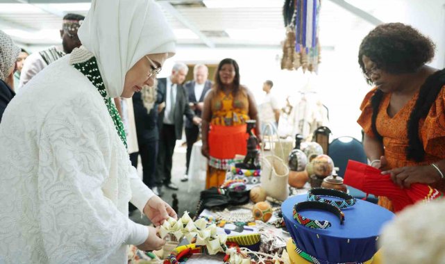 Müzik grubunun Akapella gösterisini dinleyen Emine Erdoğan, daha sonra Ulusal Miras Konseyi Sergisi'ni gezerek eserler hakkında bilgi aldı.