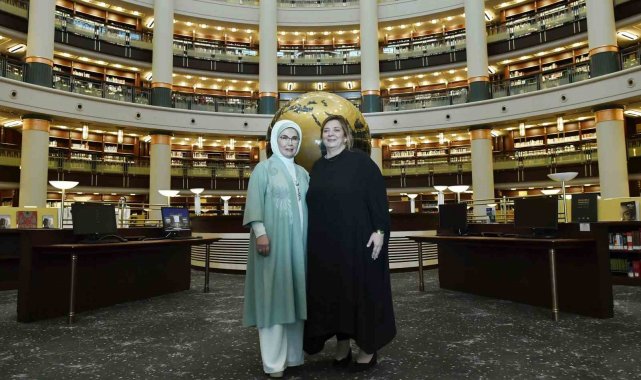Liderlerin eşleri, Cumhurbaşkanlığı Külliyesi'nde yer alan Devlet Konukevi'ndeki görüşmelerinin ardından Cumhurbaşkanlığı Millet Kütüphanesi'ne geçti.