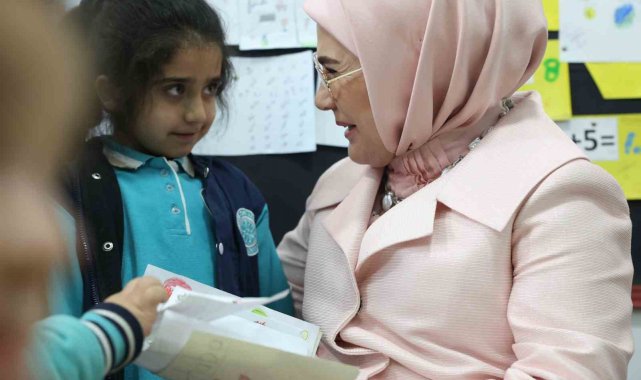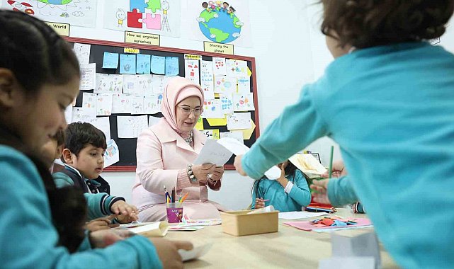 Daha sonra okul öncesi eğitim alan çocukların bulunduğu sınıfa geçen Emine Erdoğan, çocuklarla oyun oynadı, yaptıkları resimler hakkında sohbet etti.