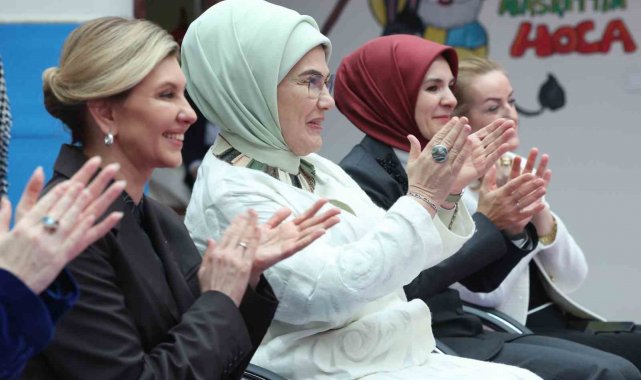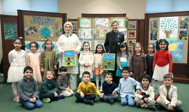 Emine Erdoğan ve Ukrayna Devlet Başkanı Volodimir Zelenskiy'nin eşi Olena Zelenska, Eryaman Çocuk Evleri Sitesi'ni ziyaretlerinin ardından Cumhurbaşkanlığı Millet Kütüphanesi'ne geçti. Cihannüma Salonu'nu gezen Emine Erdoğan ve Zelenska, Ukrayna özel bölümünde yer alan kitapları inceledi. Emine Erdoğan, Zelenska'ya Mevlana'nın "Mesnevi" eserinin İngilizce baskısı ile Cumhurbaşkanlığı İletişim Başkanlığınca hazırlanan "Türkiye" tanıtım kitabını hediye etti. Nasrettin Hoca Çocuk Kütüphanesi'ni de ziyaret eden lider eşleri, burada okuma, resim ve boyama gibi etkinlikler yapan çocuklarla bir araya geldi. Çocuklar, kendi elleriyle yaptıkları ve üzerinde gelincik desenlerinden oluşan resimler ile domates, köy biberi ve yıldız domates ata tohumlarının bulunduğu keseleri lider eşlerine hediye etti. Kütüphane ziyareti sonrası Emine Erdoğan ve Zelenska, Devlet Konukevi'ne geçti. Lider eşleri, burada ikili görüşme gerçekleştirdi.