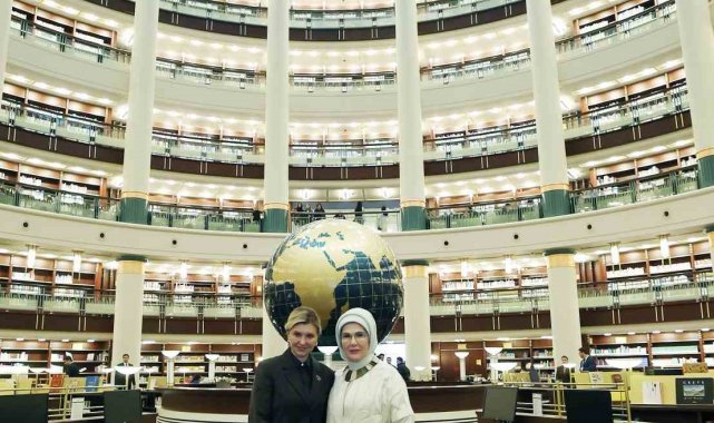 Emine Erdoğan, Ukrayna Devlet Başkanının eşi Zelenska ile Cumhurbaşkanlığı Millet Kütüphanesi'ni ziyaret etti