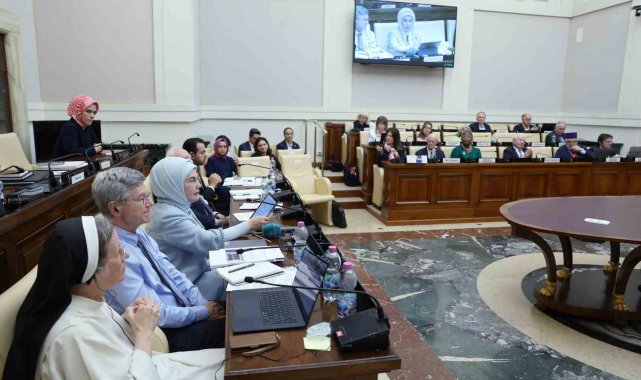 Konuşması büyük alkış alan Emine Erdoğan, Vatikan'daki konferans boyunca en çok ilgi gören konuk oldu. Vatikan'daki konferans, aile fotoğrafının çekimiyle sona erdi.