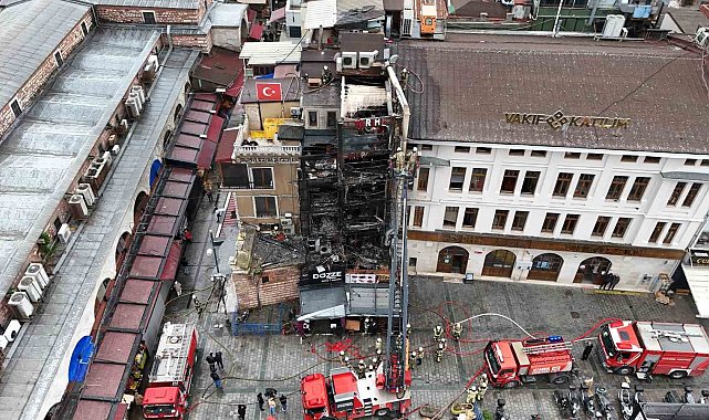 Eminönü'nde Mısır Çarşısı'nın yakınında çıkan yangında kullanılamaz hale gelen 5 katlı restoran havadan görüntülendi.