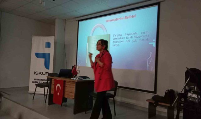 Afyonkarahisar 'Çalışma ve İş Kurumu İş ve Meslek Danışmanları' tarafından verilen seminerde, 'Kariyer planlamalarını' doğru yapabilmeleri için anlaşılır şekilde rehberlik edildi. Okulda verilen semineri; İş ve Meslek Danışmanı Türkan Baygül ve Nihat Yanıkören verdiler.