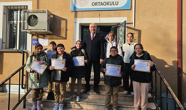 Atatürk Ortaokulu Öğretmenler Kurulu'nun akademik, sanat, spor alanlarında yaptıkları başarılı çalışmaları ödüllendirmek amacıyla başlattığı 'Ayın Öğrencisi' uygulaması devam ediyor. Bu kapsamda aralık ve ocak aylarının öğrencilerine bayrak töreni öncesi İlçe Milli Eğitim Müdürü Gürkan Emeksiz tarafından başarı belgelerini verdi.