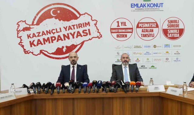 Emlak Konut GYO Genel Müdürü Yasir Yılmaz, bugün düzenlenen basın toplantısında 'Kazançlı Yatırım Kampanyası'nın detaylarını açıkladı. Bugün hayata geçirilen konut kampanyasında 3 farklı modelin olduğunu ve peşinatsız azalan taksit seçeneği, 1 yıl ödemesiz, leasing modeli gibi seçeneklerin olduğunu belirten Yılmaz, kampanyanın İstanbul başta olmak üzere İzmir, Antalya ve Balıkesir'deki 25 projeyi kapsadığını ifade etti. Projeye son başvuru tarihi ise 23 Mart olarak belirlendi.