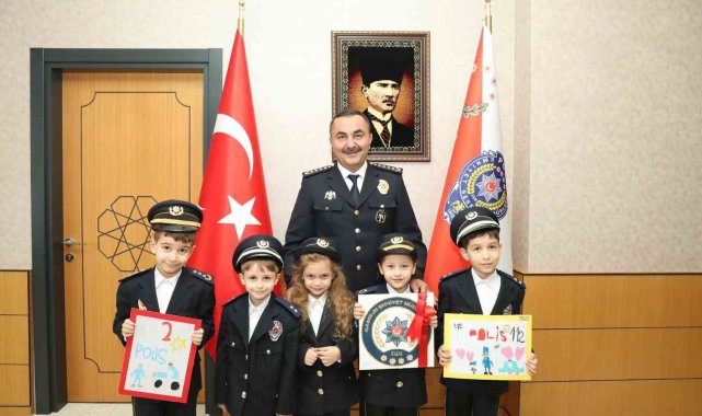 Türk Polis Teşkilatı'nın 180. kuruluş yıldönümü etkinlikleri çerçevesinde, Yeşildere Anaokulu öğrencileri öğretmenleri eşliğinde İl Emniyet Müdürü Ahmet Arıbaş'ı makamında ziyaret etti. Etkinlik öncesinde Toplum Destekli Polislik görevlilerince miniklere özel olarak hazırlanan polis üniformaları hediye edildi. Üniformalarını heyecanla giyen çocuklar, sabah saatlerinde okuldan polis eskortu eşliğinde alındı. Sirenler eşliğinde gerçekleştirilen bu yolculuk minikler için unutulmaz bir anı olurken, Samsun Emniyet Müdürlüğü binasına vardıklarında kendilerini bekleyen ekipler tarafından karşılandılar.