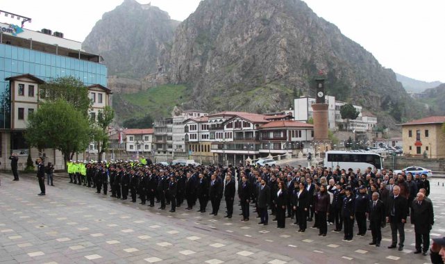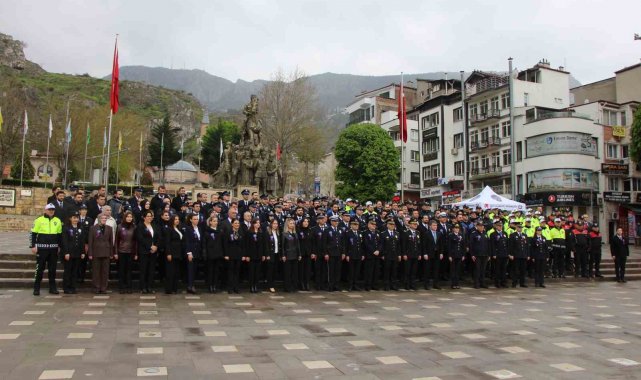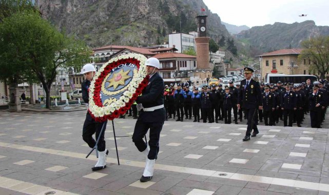 Amasya Valisi Önder Bakan da çelenk sunma törenine katılan emniyet çalışanlarıyla fotoğraf çektirerek günlerini kutladı.