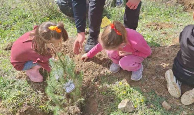 Bursa'da İznik Cumhuriyet İlkokulu ana sınıfı öğretmenleri ve öğrencileri emniyet personelleri ile birlikte 21-26 Mart Orman Haftası etkinlikleri kapsamında çok sayıda fidan diktiler.