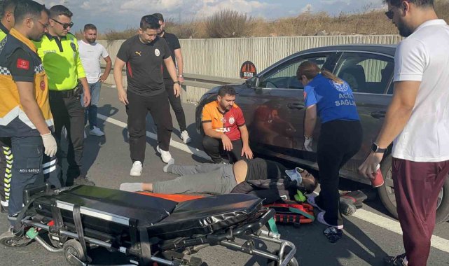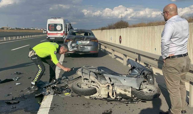 Emniyet şeridindeki otomobile motosiklet çarptı: 1 yaralı