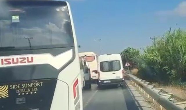 Antalya'nın Manavgat ilçesinde emniyet şeridini kullanan araç sürücüleri ambulans şoförüne zor anlar yaşattı