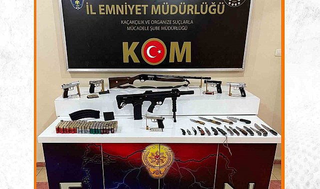 Operasyon kapsamında H.G., T.İ., İ.K., C.P., A.T. ve T.İ. isimli şahısların ikametlerinde arama yapıldı. Ekiplerce 2 adet ruhsatsız tüfek, 5 adet ruhsatsız tabanca, 8 adet şarjör, 184 adet kartuş, 49 adet tabanca fişeği, 18 adet delici bıçak ele geçirildi.