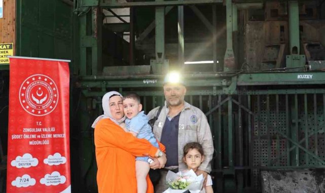Zonguldak'ta ocaktan çıkan madenciler ailelerinin sürprizi ile karşılaştı.