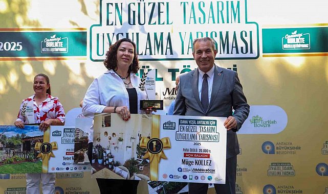 Antalya Büyükşehir Belediyesi tarafından düzenlenen Daha Yeşil Antalya İçin En Güzel Tasarım ve Uygulama Yarışması'nda ödüller sahiplerini buldu. En güzel çiçekçilik tasarımı, yeşil alan uygulamaları ve peyzaj ile kent donatıları tasarımlarında dereceye giren uygulamalar ödüllendirildi.