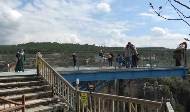 İncekaya Kanyonu üzerine yapılan Türkiye'nin ilk cam seyir terası da misafirlerini ağırlamaya devam ediyor. Bayramın ilk 3 gününde yoğunluğun hakim olduğu turizm cazibesi cam terasta vatandaşlar orman manzaralı kanyonun keyfini çıkarıyor.