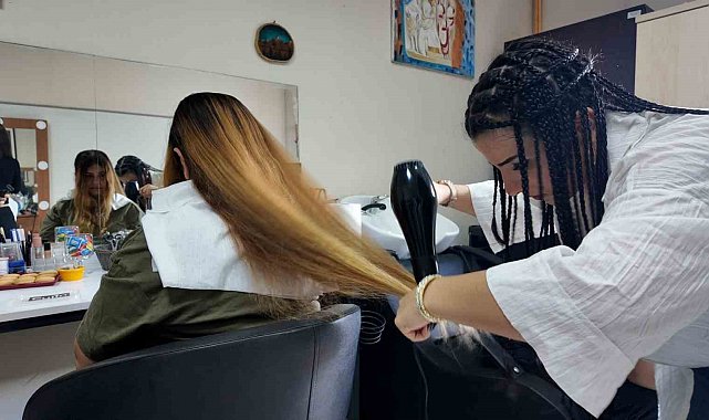 Kocaeli Büyükşehir Belediyesi'nin Beyaz Kalpler Eğitim ve Gelişim Merkezi'nde "Kuaförlük Atölyesi'ne" katılan öğrenciler, aldıkları eğitimleri anneleri üzerinde uygulayarak hem deneyim kazandı hem de keyifli bir etkinlik gerçekleştirdi.