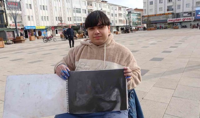 Yozgat'ın Sorgun ilçesinde yaşayan yürüme ve konuşma engelli Enes Külekçi, engellerini aşan resim yeteneğiyle kendine hayran bıraktı.