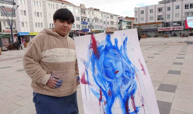 Sorgun Şakir Efendi Meydanı'nda farkındalık oluşturmak için malzemelerini alarak resim çizen Enes Külekçi, meydandan geçenlerin takdir cümleleri eşliğinde çizimini gerçekleştirdi. Önümüzdeki günlerde yeni resim sergisi açmak için planları olduğunu söyleyen Enes, kadınların yaşadığı sorunlara dikkat çekmek istiyor. Enes, "Kadınların geçmişten bugüne ayakta kalmak için her şeyi yapmaları ilgimi çekiyor. Mesela anneannemin çektiği sıkıntıların bana etkisi oldu. Çizimlerim konusunda fikir verdi. Eskiden kadınlar, özellikle köylerde çok zorluklar yaşıyordu. Kadınların sesi olmak istiyorum. Açmak istediğim sergiye bu toplumsal sıkıntıların farkında olan herkesten destek bekliyorum" dedi.