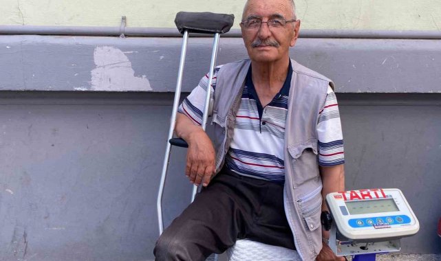 Geçirdiği rahatsızlık sonucu bir ayağını kaybeden Ramazan Yıldırımer, her sabah engelli aracıyla Hamamyolu'na gelerek akşama kadar küçük tartıdan kazandığı parayla bütçesine katkı sağlıyor.