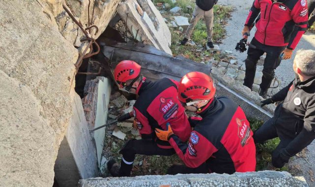 Tekirdağ'da arama kurtarma birimi, muhtemel bir deprem ve afet senaryosuna karşı enkaz altında kalan yaralının köpekler yardımıyla tespit edilip kurtarıldığı kapsamlı bir tatbikat gerçekleştirdi.