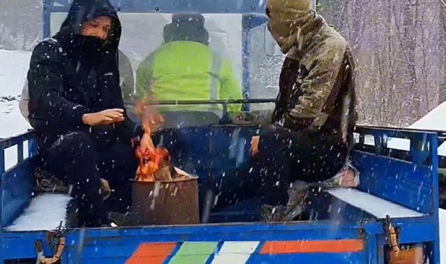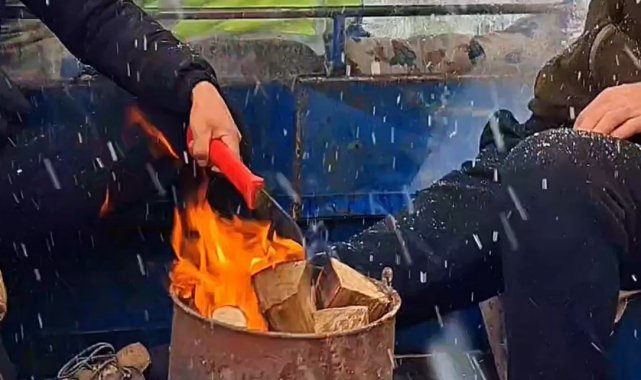 Tokat'ın Erbaa ilçesinde yaylaya gitmek isteyen köylüler, pat pat römorkunda soba niyetine ateş yakarak zorlu kış şartlarına meydan okudu.