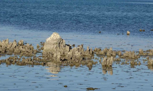 Erçek Gölü'nde su çekilince mikrobiyalitler ortaya çıktı