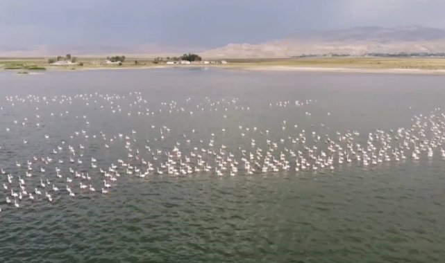 Van Gölü Havzası'ndaki sulak alanları yaz aylarında mesken tutan binlerce flamingo havaların ısınmasıyla Erçek Gölü'ne gelmeye başladı.
