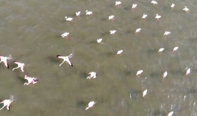 Erçek Gölü'nün narin misafirleri flamingolar gelmeye başladı