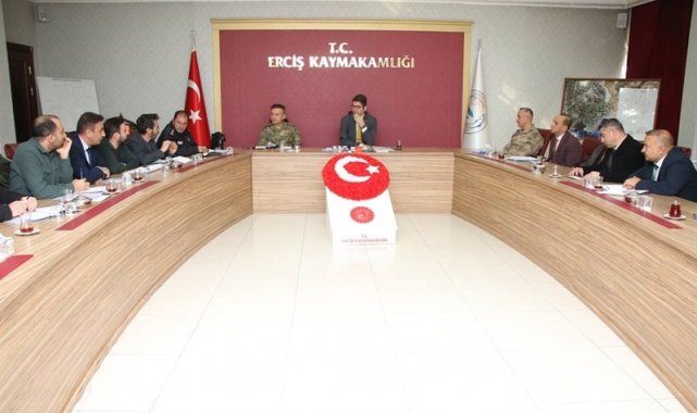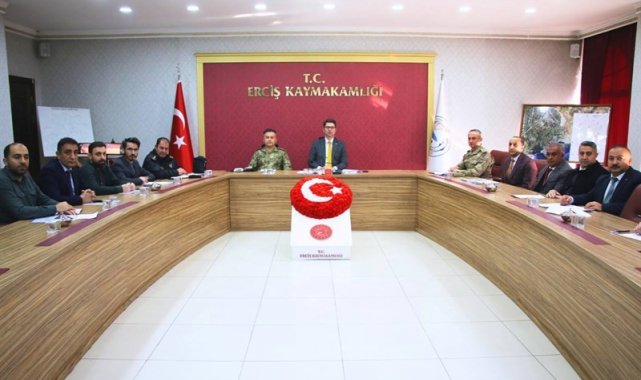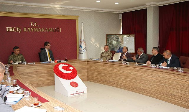 Toplantıya Erciş Kaymakamı Murat Karaloğlu, 108. Topçu Alay Komutanı Topçu Albay Zafer Akkaş, İlçe Jandarma Komutanı Jandarma Yarbay Murat Geniş, İlçe Emniyet Müdürü Süleyman Trak ve komisyon üyeleri katıldı.