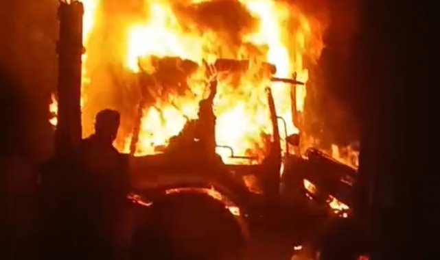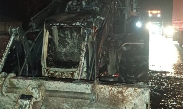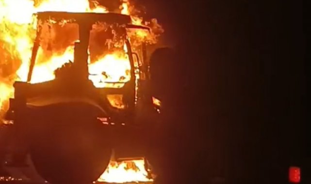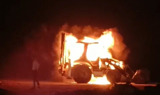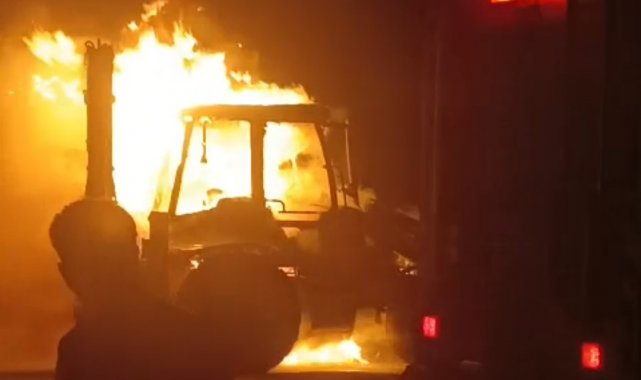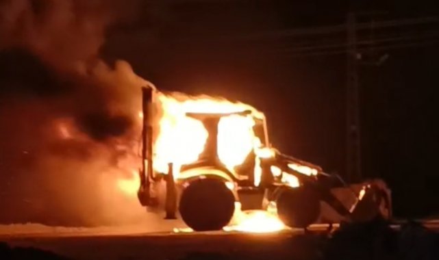 Erciş'te iş makinesi alev alev yandı
