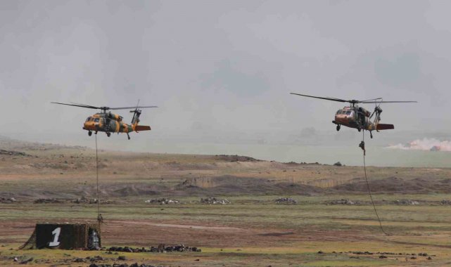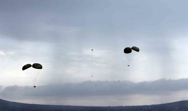 Kıbrıs Barış Harekatı'nda görev icra eden ve sancağında 2 üstün cesaret ve feragat madalyası olan Kayseri 1. Komando Tugayı tarafından düzenlenen Erciyes-2025 Tatbikatı'nın seçkin gözlemci günü icra edildi. Konvansiyonel, konvansiyonel olmayan ve hibrit harekat ortamında müşterek hava indirme yeteneğini kazanmak, kuvvet sevki ve derhal müdahale yeteneklerini geliştirmek, dost ve müttefik ülkelerle birleşik harekat icra etme kabiliyetini artırmak amacıyla düzenlenen tatbikat kapsamında, 12. Hava Ulaştırma Ana Üs Komutanlığı'nda hazırlıklarını tamamlayan 265 paraşütçü komando, Şehit Teğmen Hasan Bak Atma ve Atlama Sahası'na iniş yaptı. Paraşütçü komandolar, temsili düşman muharebe merkezine operasyon düzenleyerek, teröristlerden arındırılan bölge SİHA ile vuruldu. Düşman bölgesine helikopterle indirilen toplarla da bölgenin hakim noktasındaki hedefler imha edildi.