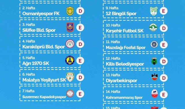 Erciyes 38 FK'nin ilk yarı fikstürü ise şu şekilde: