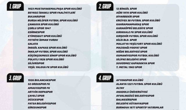 12 Bingölspor, Ağrı 1970 Spor, Diyarbekirspor, Kahramanmaraşspor, Karaköprü Belediyespor, Kırşehirspor, Kırıkkale FK, Kilis Belediyespor, Malatya Yeşilyurtspor, Mazıdağı Fosfatspor, Niğde Belediyespor, Osmaniyespor FK, Silifke Belediyespor, Suvermez Kapadokyaspor ve T.Metal 1963 Spor.