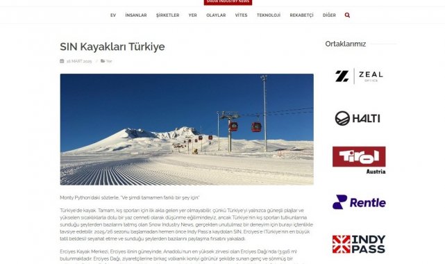 Kış sporları başta olmak üzere spor ve turizmin gözdesi olan Kayseri Büyükşehir Belediyesi bünyesindeki Erciyes Kayak Merkezi, her geçen gün artan ziyaretçisi ve ülke sınırlarını aşan şöhreti ile yerli ve yabancı basın kuruluşlarının da dikkatini çekmeye devam ediyor. Dünyanın önemli kış turizm ve sporları haber sitelerinden biri olan Snow Industry News (SIN), 'SIN Kayakları Türkiye' başlıklı yazısında Erciyes Kayak Merkezi'ne dair geniş bilgi vererek, görüşlerini aktardı. 'Ve şimdi tamamen farklı bir şey için' şeklindeki girişi bulunan yazıda, Erciyes'in konumu, tarihi ve özellikleri hakkında detaylı bilgiler paylaşılarak, Erciyes'e özgü bazı ayrıntılar da dile getirildi. Yazıda şunlara yer verildi;