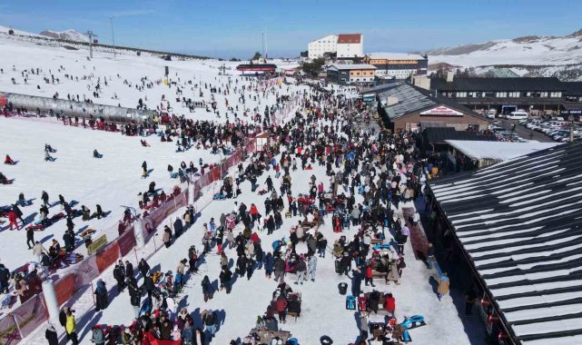 Erciyes'te hafta sonu yoğunluğu, binlerce turist pistlerde