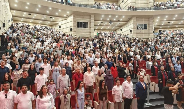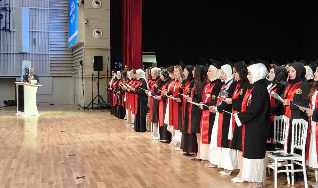 Saygı duruşu ve İstiklal Marşı'nın okunmasıyla başlayan mezuniyet törenine AK Parti Kayseri Milletvekili Bayar Özsoy, ERÜ Rektörü Prof. Dr. Fatih Altun, KAYÜ Rektörü Prof. Dr. Kurtuluş Karamustafa, protokol üyeleri, öğrenciler ve aileleri katıldı.