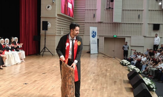 Mezun olan öğrencilerin hekimlik andının ardından fakülte birincisi mezuniyet kütüğüne levha çaktı. Diplomalarını alan öğrencilerin kep atması ile tören sona erdi.