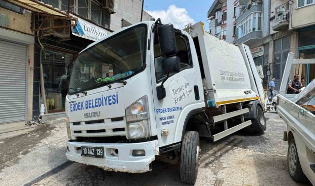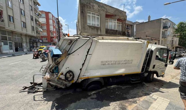 Balıkesir'in Erdek ilçesinde kısa süre önce alt yapı çalışmaları tamamlanarak asfaltla kaplanan Zübeyde Hanım Caddesi üzerindeki Kandil Çeşme Sokak girişinde yol çöktü. Olay, belediyeye ait bir çöp kamyonunun geçişi sırasında meydana geldi.