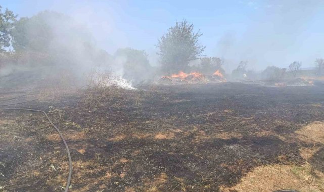 Erdek'te zeytinlik ve otluk alanda çıkan yangın söndürüldü