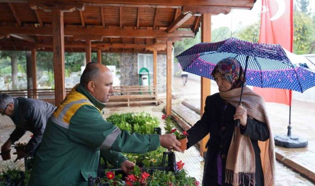 Mersin'in Erdemli Belediyesi, Ramazan Bayramı dolayısıyla mezarlıkları ziyaret eden vatandaşlara kabirlere dikmeleri için ücretsiz çiçek dağıttı.