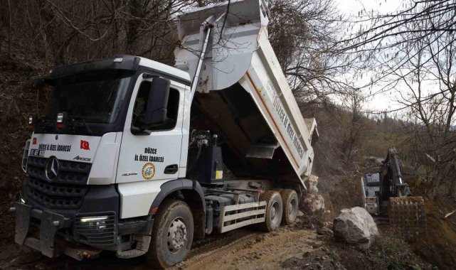DÜZCE (İHA) – Düzce İl Özel İdaresi Yol ve Ulaşım Hizmetleri Müdürlüğü ekipleri, il genelinde daha önce meydana gelen heyelanlarda olduğu gibi Erdemli Köyü'nde yaşanan heyelana da kısa sürede müdahale etti. Yol güvenliğinin sağlanması ve ulaşımda aksama yaşanmaması amacıyla başlatılan çalışmalar aralıksız devam ediyor.