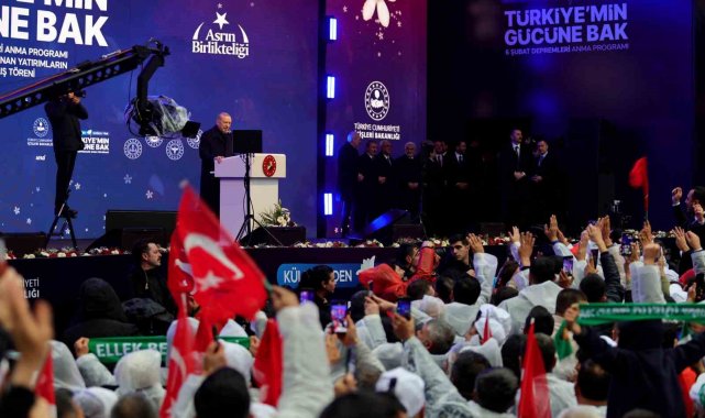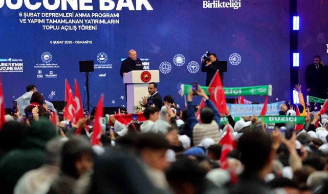 "Depremin yol açtığı kayıp ve zararların telafisi için toplam 3,6 trilyon lira yani 90 milyar dolar civarında kaynak kullandık. Şehirlerimizin depreme dirençli hale getirilmesi için 2026 bütçesinde 653 milyar lira ödenek ayırdık. Afet bölgesindeki evlatlarımızın eğitimi, üzerinde durduğumuz konuların başında yer alıyor. Bölgedeki 119 bin 200 dersliğin 9 bin 800'ü kullanılamaz duruma gelmişti. 14 bin 310 derslik inşa ettik. 2 bin 965 dersliğin güçlendirme çalışmalarını bitirdik. Toplam derslik sayımızı 126 bin 675'e çıkardık. Deprem illerimizdeki gençlerin barınma ihtiyaçlarını karşılamak üzere 14 bin 400 yatak kapasiteli 15 adet yeni yurt projesi yürütüyoruz. Şuraya özellikle dikkatinizi çekiyorum, sağlık altyapısında meydana gelen hasarın telafisi için 123 milyar liralık yatırım gerçekleştirdik. Toplamda 5 bin 864 yatak kapasiteli 36 devlet hastanesini bitirdik. İbadethanelerimizi ihya ettik. Kütüphanelerimizi ayağa kaldırdık. Kültür varlıklarımızı, tarihi yapılarımızı ve müzelerimizi onardık. Adalet ve emniyet hizmetlerinin hiçbir aksaklığa mahal verilmeden devam ettirilmesi için gerekli tüm adımları attık. Deprem bölgemizde 203 bin metrekare büyüklüğünde 3 adalet binası ve 1 ceza infaz kurumu inşa ederek hizmete açtık. Toplam 224 bin metrekarelik 9 adalet binası ile 1 ceza infaz kurumunun yapımını da yakında tamamlıyoruz. 60 emniyet binamızın inşa ve onarımı ile jandarmamıza ait 29 hizmet binasının yapımını ve 143 binanın güçlendirme işlemlerini tamamladık. 10 adet hizmet binamızın yapımı ise sürüyor. Depremden etkilenen 11 ilimizdeki huzurevleri, çocukevleri ve sosyal hizmet merkezleri gibi hizmet binalarımızı da yeniden ihya ettik. Esnafımızın, sanayicimizin, çiftçimizin, üreticimizin hep yanında olduk. Mücbir sebep hallerini 2025 yılının sonuna kadar uzattık. Prim borçlarını erteledik ve bu borçların 31 Mart 2026'ya kadar yapılandırılmasının önünü açtık. Hizmetlerin aksamadan yürütülmesi için yerel yönetimlere ciddi miktarda nakdi yardımda bulunduk. Böylelikle yol, su, elektrik gibi temel ihtiyaçlarla birlikte eğitim ve sağlık gibi ana hizmetlerin de karşılandığı yaşam alanları oluşturduk. İçme suyu ve atık su altyapısının hızla tesis edilmesi amacıyla 11 deprem ilimizde 8 bin kilometre uzunluğunda boru hattı inşa ediyoruz. Su ve sulama alanında devam eden yatırımlarımız bittiğinde 110 milyar liralık bir rakamı bölgemiz için kullanmış olacağız. Ulaşım yatırımları için harcadığımız tutar 80 milyar lirayı buluyor. Yeni yerleşim alanlarının ulaşımı için 294 kilometrelik bağlantı ve imar yolu yaptık. Enerji ve madencilik sektörlerindeki zararları önemli ölçüde telafi ettik. Depremde zarar gören demiryolu hatlarının onarımını gerçekleştirdik. Hatay ve Malatya havalimanlarını onararak sivil uçuşlara açtık. Her iki havalimanımızda da inşallah yıl sonuna kadar tam kapasite hizmet vermeye başlayacak. Madenli Yat Limanı ve Su Sporları Merkezi'nin yapımını da bu sene bitireceğiz. Deprem bölgemizdeki haberleşme altyapımızı da hızla yenileyerek daha güçlü bir seviyeye taşıdık. 6 Şubat öncesinde 58 bin kilometre olan fiber uzunluğumuz bugün 80 bin kilometreye ulaştı. Yaklaşık 5 bin 300 adet kalıcı baz istasyonu kurduk. Sanayi yatırımlarımızı da süratle hayata geçiriyoruz. Daha burada saymaya kalksak saatlerimizi alacak nice yatırımı, desteği depremden etkilenen şehirlerimizin emrine verdik."
