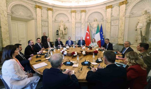 Cumhurbaşkanı Recep Tayyip Erdoğan, Roma temaslarını sürdürüyor. İtalya Başbakanı Giorgia Meloni ile ikili görüşme gerçekleştiren Erdoğan daha sonra heyetler arası görüşmeye geçti. Erdoğan ve Meloni, heyetler arası görüşmelerine başkanlık etti. Roma'daki tarihi Villa Doria Pamphili rezidansında gerçekleştirilen toplantıda Türk heyetinde Cumhurbaşkanı Erdoğan'ın yanı sıra Dışişleri Bakanı Hakan Fidan, Milli Savunma Bakanı Yaşar Güler, Ticaret Bakanı Ömer Bolat da hazır bulundu.