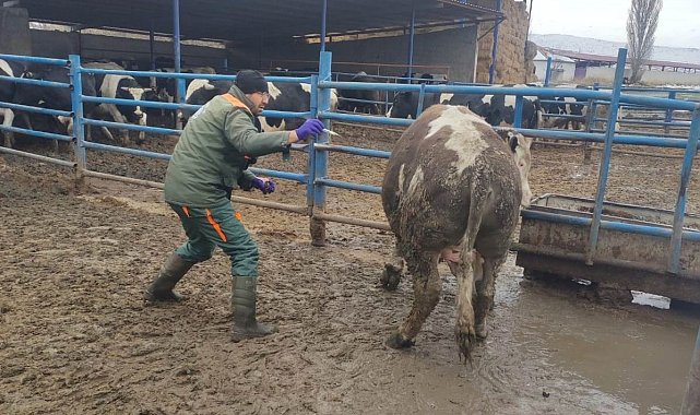 Konya'nın Ereğli ilçesinde ekipler tarafından şap hastalığına karşı aşılama çalışmaları sürüyor.