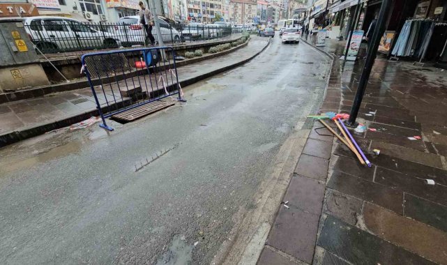 İlçede yaklaşık 10 esnafın iş yerinin su altında kaldığı caddede, sabah saatlerinden itibaren temizlik yapıldı. Çamurla kaplanan zeminler temizlenirken, bazı esnaf kullanılamaz hale gelen ürünlerini dışarı çıkardı. İş yeri sahibi Erkan Bayraktar, "Yaşadığımız doğal afet değil. Bu caddede bir tane mazgal var. O mazgalın tıkanmasından dolayı bütün felaketi yaşadık. 10 dakika içerisinde her şey oldu bitti. Tabandaki bütün ürünlerimiz suya girmiş durumda. Yaklaşık 400 bin liralık zarara uğradık. Belediye hariç bütün devlet kurumları geldi. Belediye ile hala görüşemedik. Hiçbiri gelmediler şu anda. Buna da şükür, canımız yerinde" dedi.
