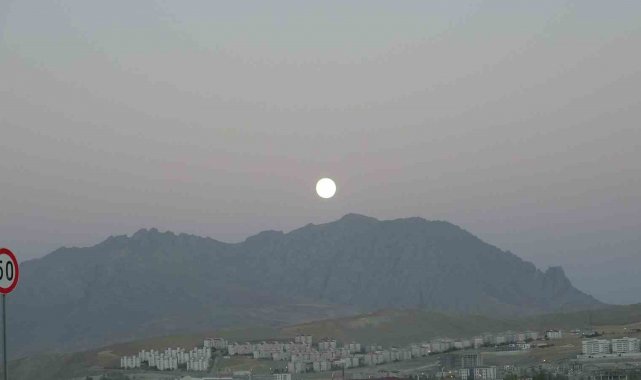 Van'ın sembollerinden biri olan Erek Dağı'nın ihtişamlı silueti üzerinde yükselen dolunay, gökyüzünde adeta bir görsel şölen sundu.