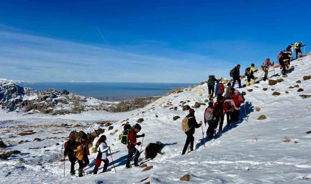 Doğa tutkunlarını bir araya getiren Vadi Doğa Sporları Kulübü, hafta sonu etkinlikleri kapsamında rotasını Erek Dağı'na çevirdi. Sabahın erken saatlerinde tırmanışa başlayan grup, zorlu hava şartlarına ve dik yamaçlara rağmen kararlılıkla ilerleyerek zirveye ulaşmayı başardı. Tırmanış boyunca eşsiz Van Gölü manzarasının tadını çıkaran dağcılar, yaklaşık 5 saat süren zorlu bir yürüyüşün ardından en yüksek noktaya ulaştı. Zirve defterini imzalayan ekip, burada kulüp flamasını açarak başarılarını kutladı.