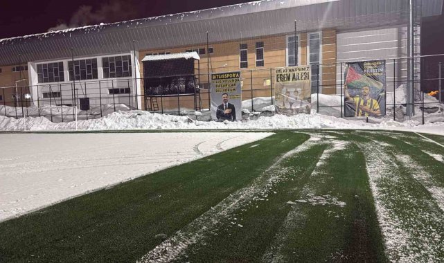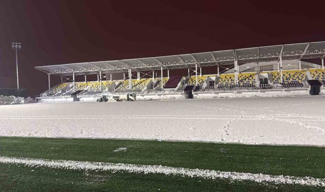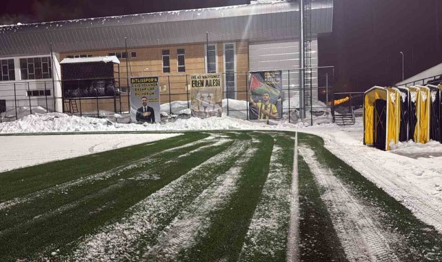 Ekipler, karşılaşmanın sorunsuz bir şekilde oynanabilmesi için sahada biriken karları temizleyerek zemini futbol oynamaya uygun hale getirmek için çalışmalarını sürdürüyor.