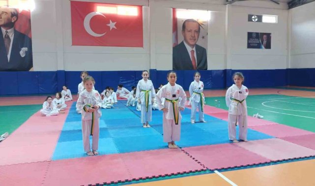 Sinop'un Erfelek ilçesinde tekvando kursuna katılan 40 öğrenci, düzenlenen kuşak sınavında bir üst seviyeye geçebilmek için ter döktü. Minik sporcuların azmi ve disiplini izleyenlerden tam not aldı.