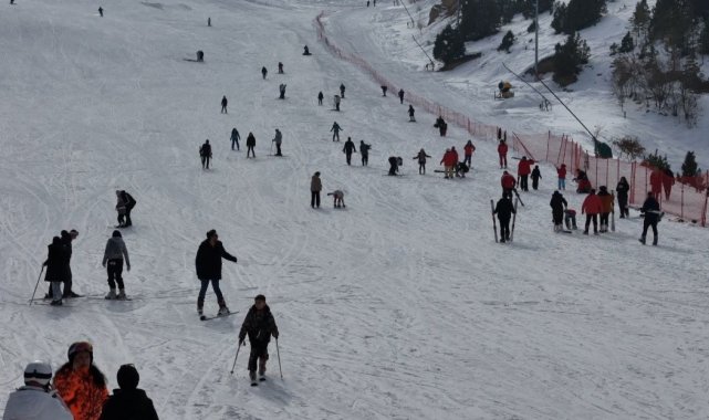 Türkiye'nin önemli kayak merkezlerinden birisi olan Erzincan'daki Ergan Kayak Merkezi, hafta sonu tatili dolayısıyla kayak severlerle dolup taştı.